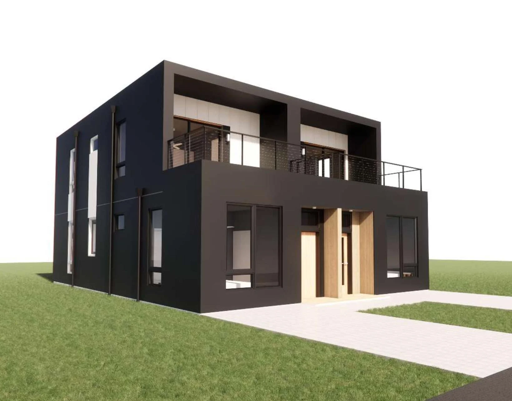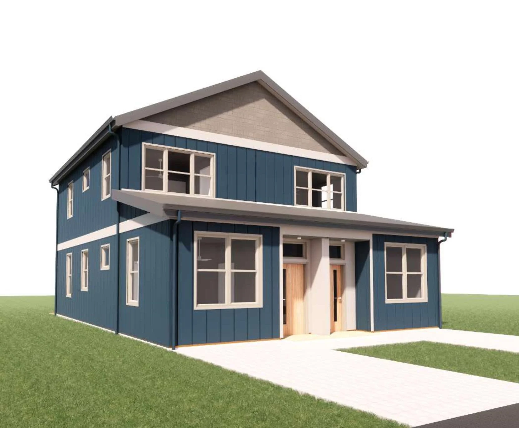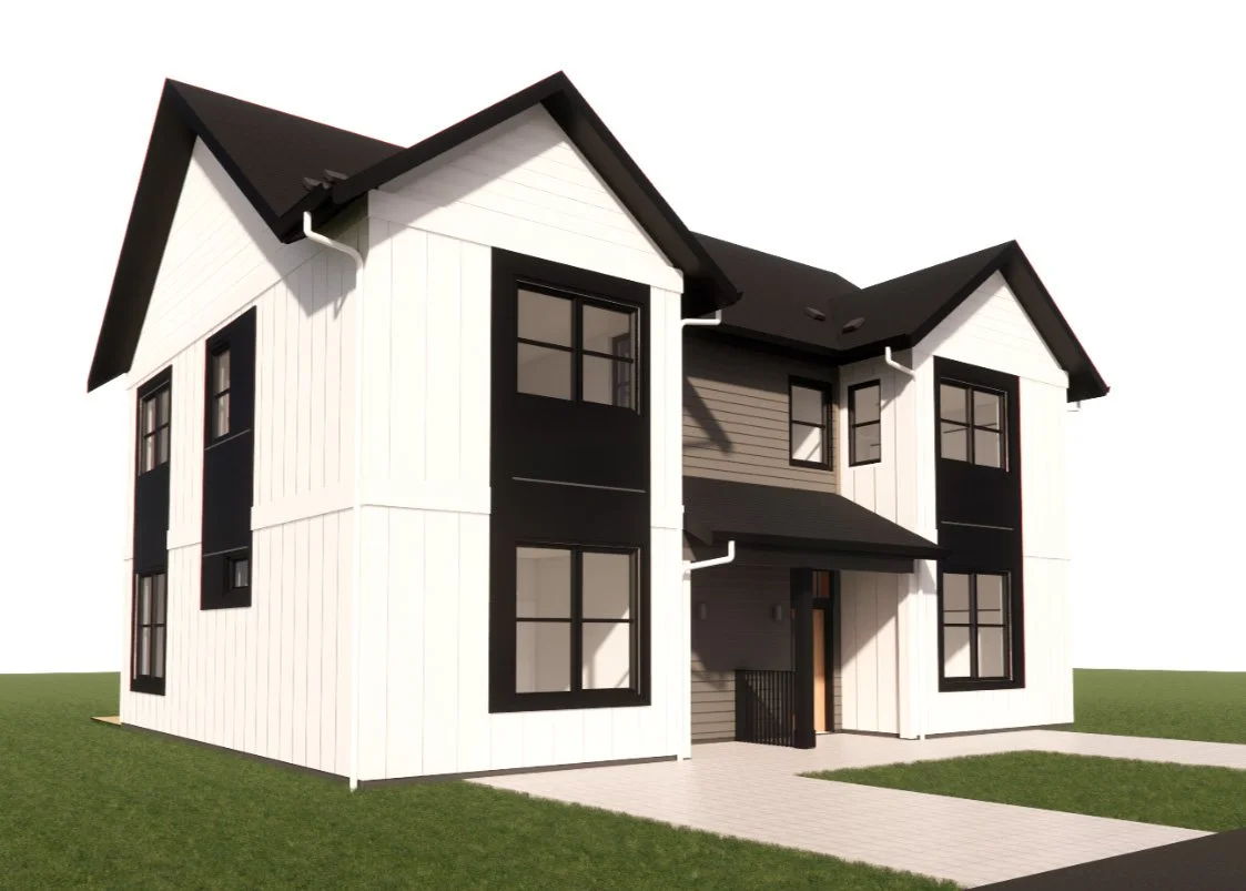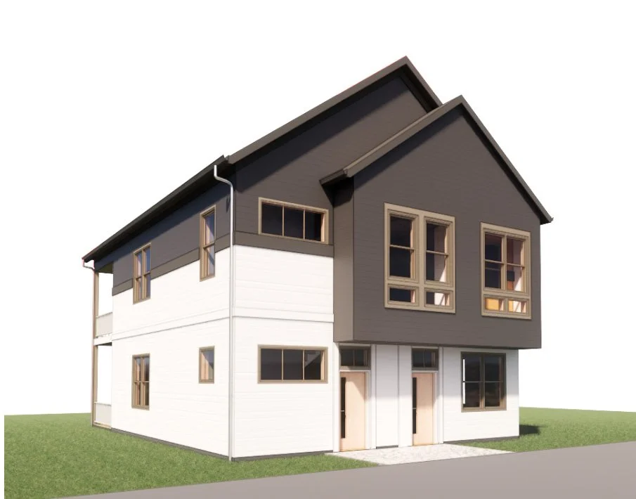 Part of a middle-housing product line developed by Ink Built Architecture, this model offers options for a variety of lot sizes and client needs. The goal is to provide small, well-designed multifamily options that work well in urban and rural settings.