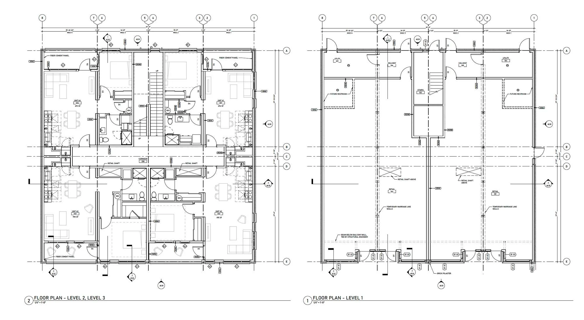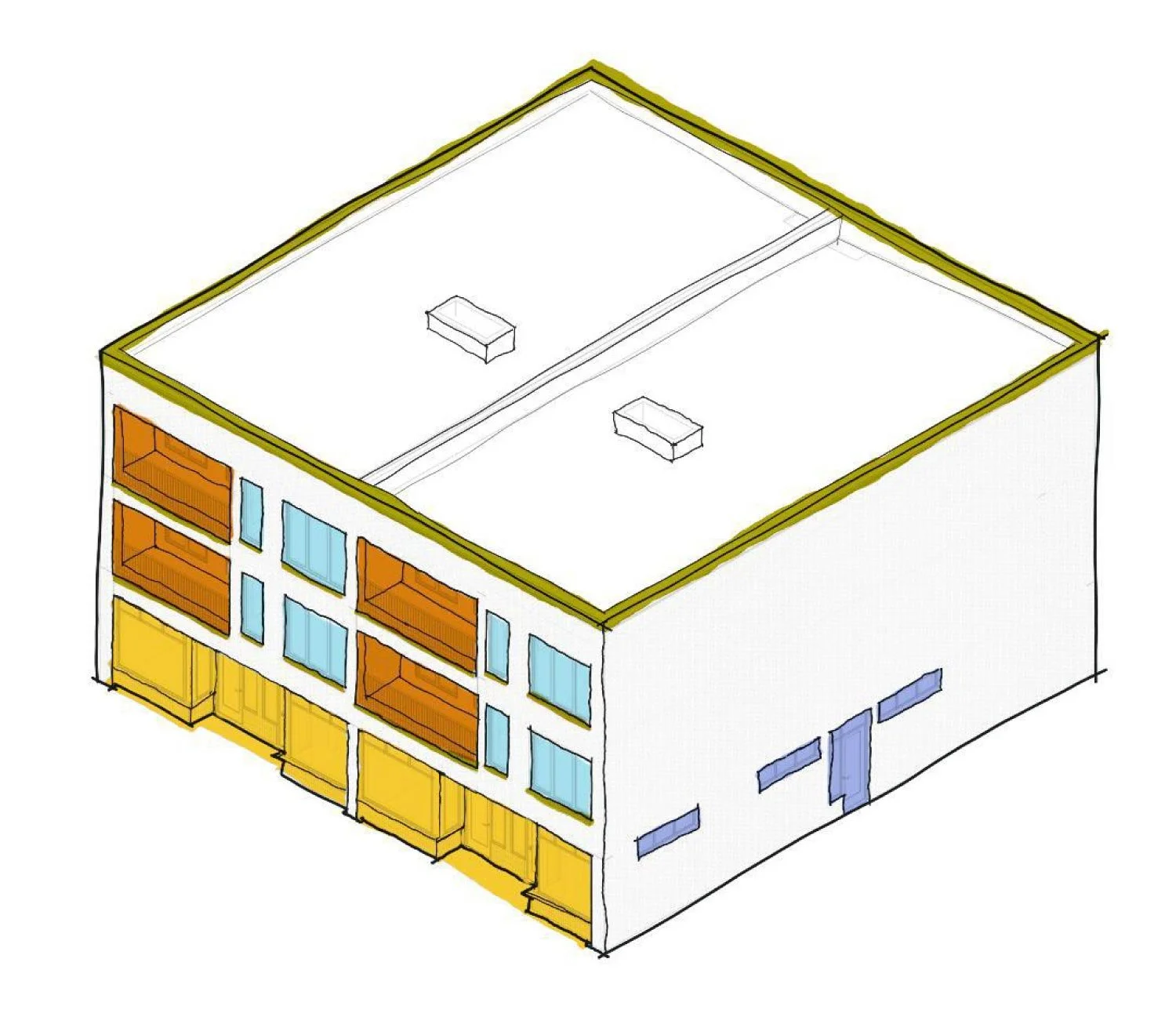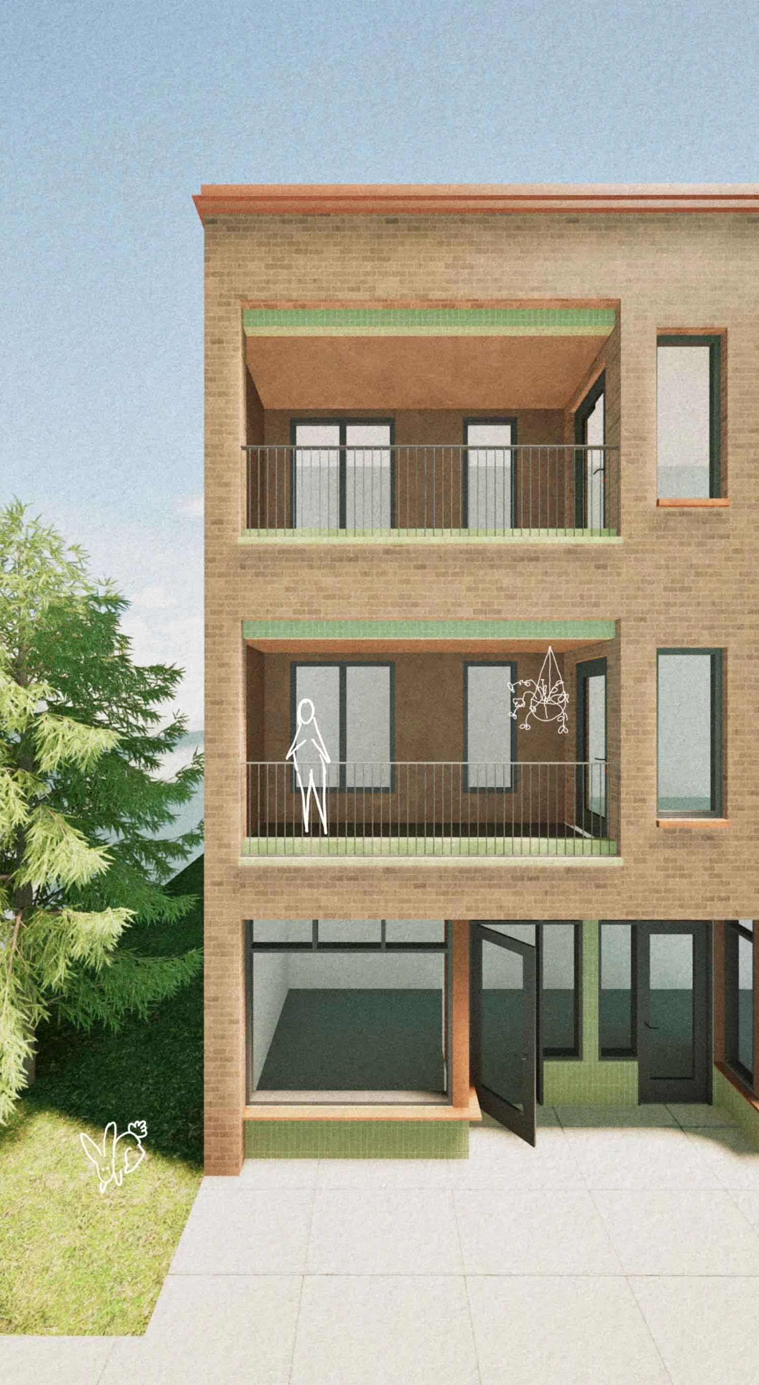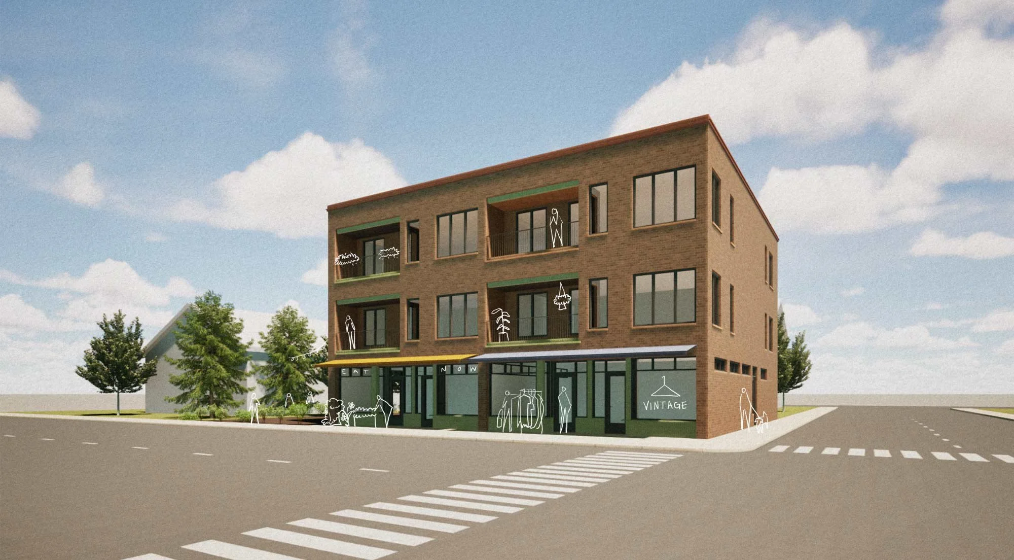 Featuring retail space on the ground floor and eight one-bedroom units above, the design offers spacious apartment units with balconies, large living areas, and ample natural light. The adaptable material palette allows developers to mix and match materials, creating vibrant and diverse streetscapes.